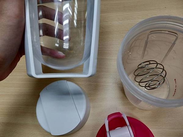 首先小紅雖然很便宜但是有送鐵球,市售價約台幣100~700間,蛋白粉搖起來很均勻,但是同時也會有鐵球刮傷杯身藏細菌的隱憂。