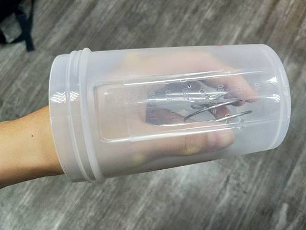 👉反之,MOUS雖然沒有鐵球,但因為是圓底的設計,在搖動的時候會形成漩渦狀的螺旋丸(誤),是螺旋水波,所以還是很容易就把蛋白粉搖散了,市售價約台幣一千多。