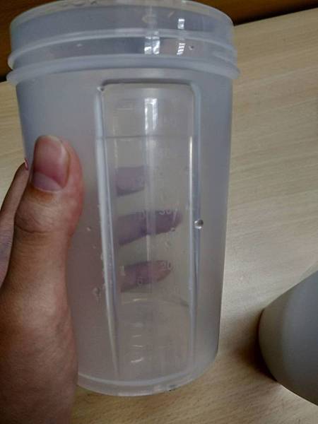 小紅可以裝到450ml,杯身是一般搖搖杯很常見的霧面的塑料材質,杯底也有寫不含BPA。